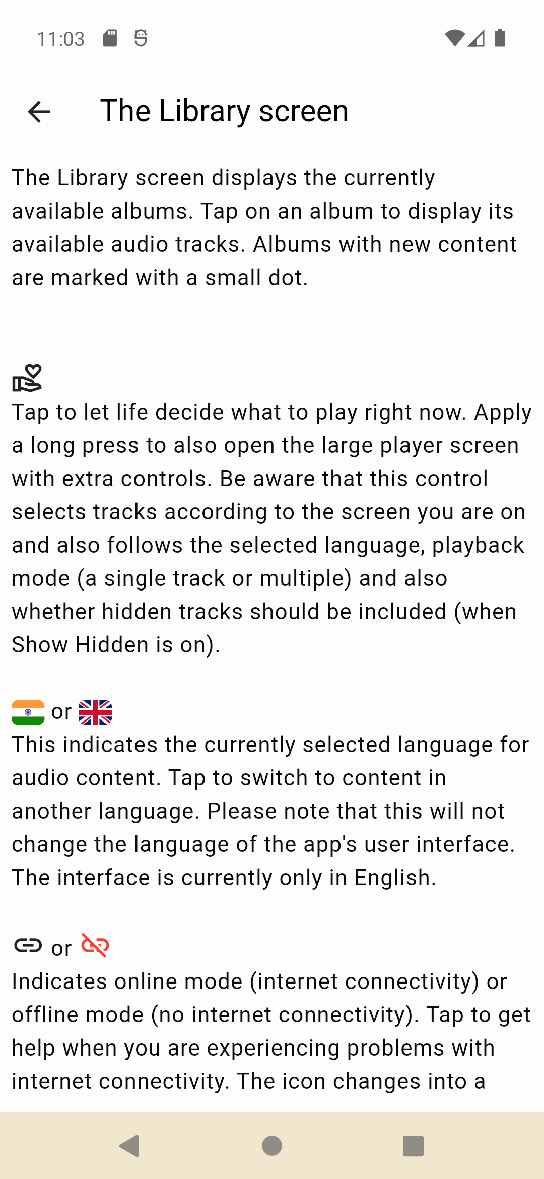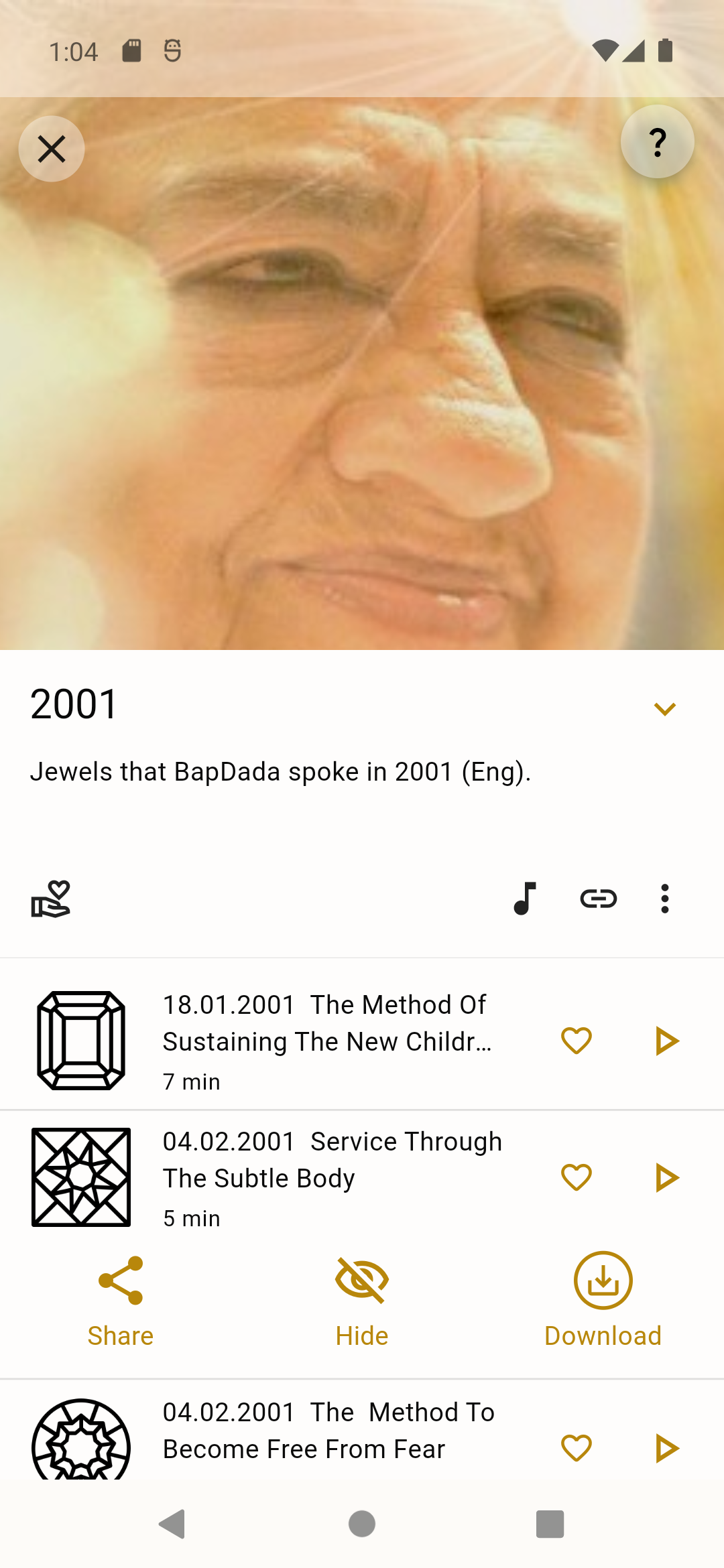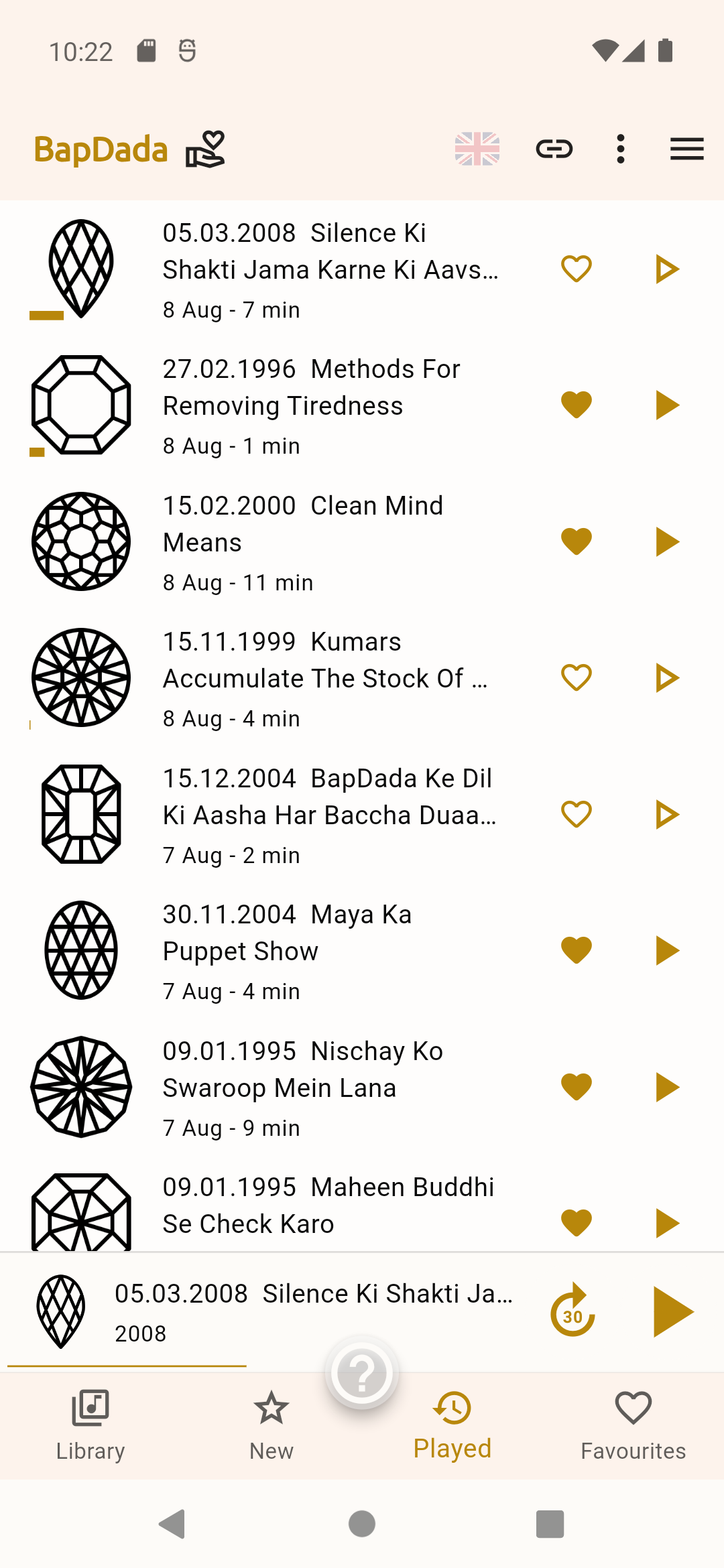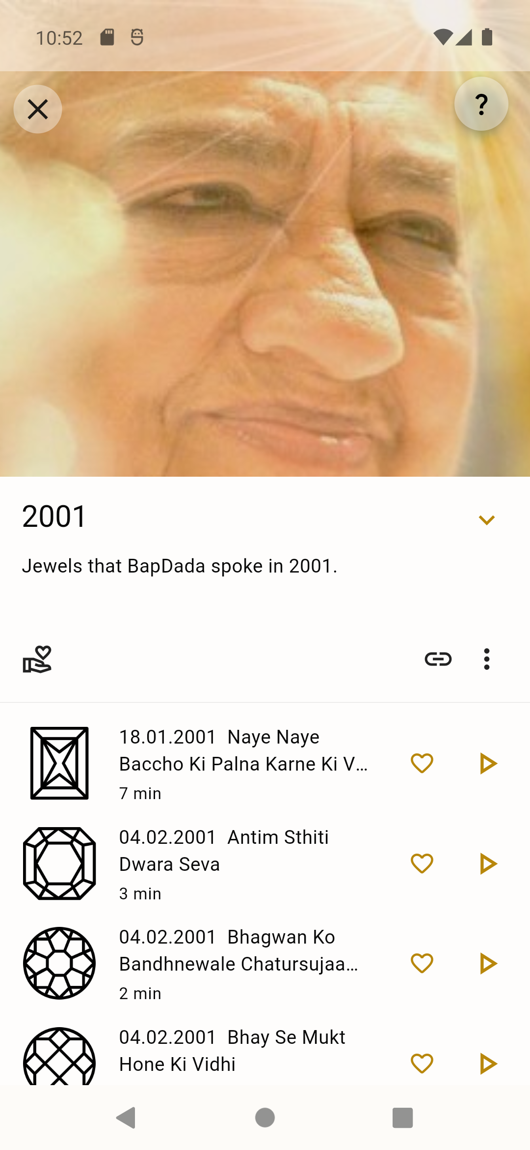 The other apps are quite useful but using this one changes things. Some wonderful individual has carefully curated a large collection of audio excerpts from BapDada’s avyakt murli’s, for twenty years in Hindi (1995 – 2014) and for the first seven years with English translation too. These are the deepest, the most touching and the most eye opening of BapDada’s interactions in that period. There is so much of the love and humour that just cannot come across on paper. The app makes the interactions quickly accessible and usable in daily life and practice. Each fragment is typically of a few minutes only. This is important since no one has time to keep listening to full avyakt murlis. And it's audio only, so you can even listen to it 'on the go' if you want to.