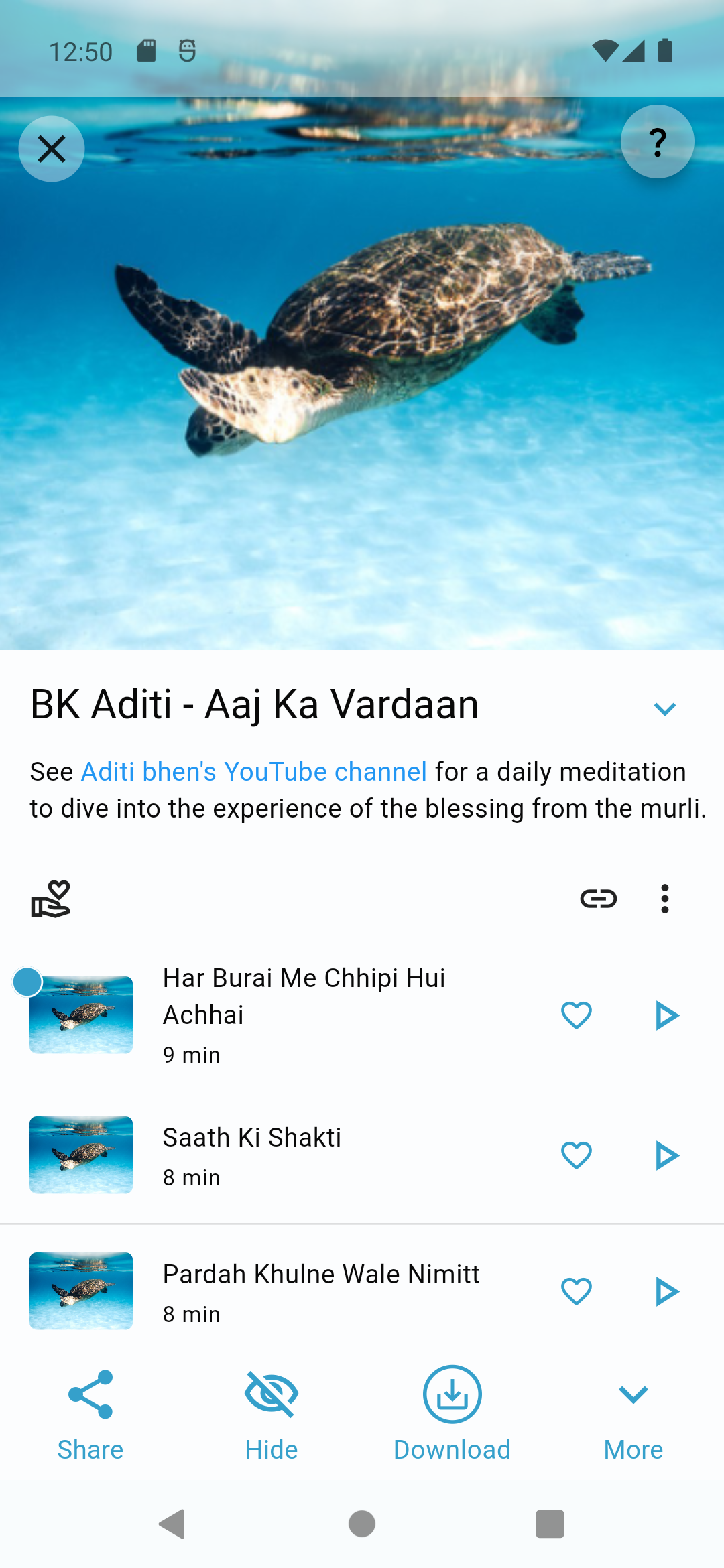This app offer a few hundred hand-picked guided meditations in English and in Hindi. These are typically not studio recorded but have mostly been extracted from classes, retreats, online meditations and webinars. The album descriptions offer links to these sources. All audio has been post edited to remove background noise as much as possible.